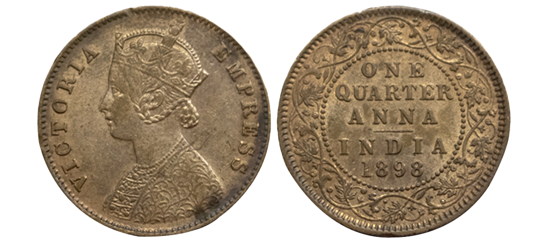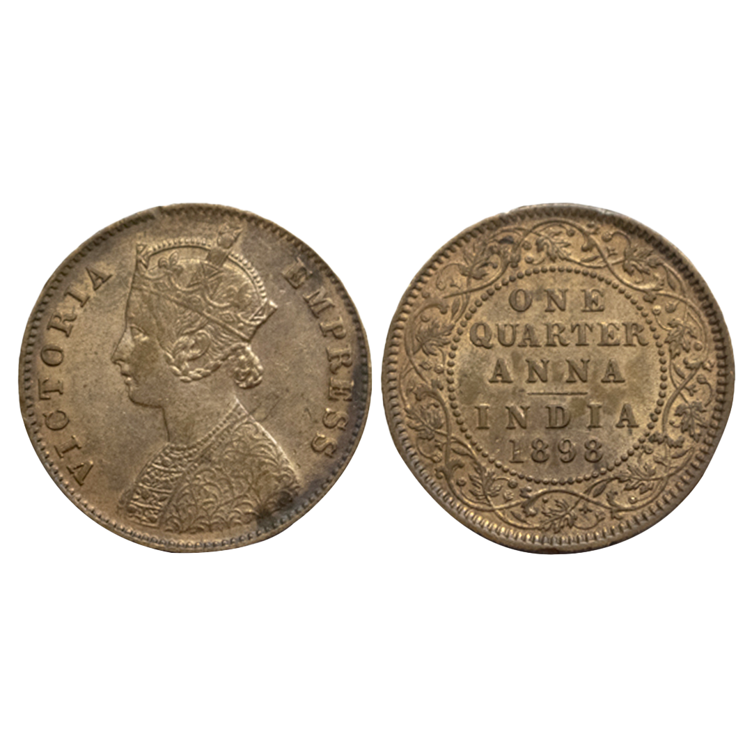 British India, Victoria Queen, Copper, One Quarter Anna, 1898, Calcutta Mint, Extremely Fine, Rare.