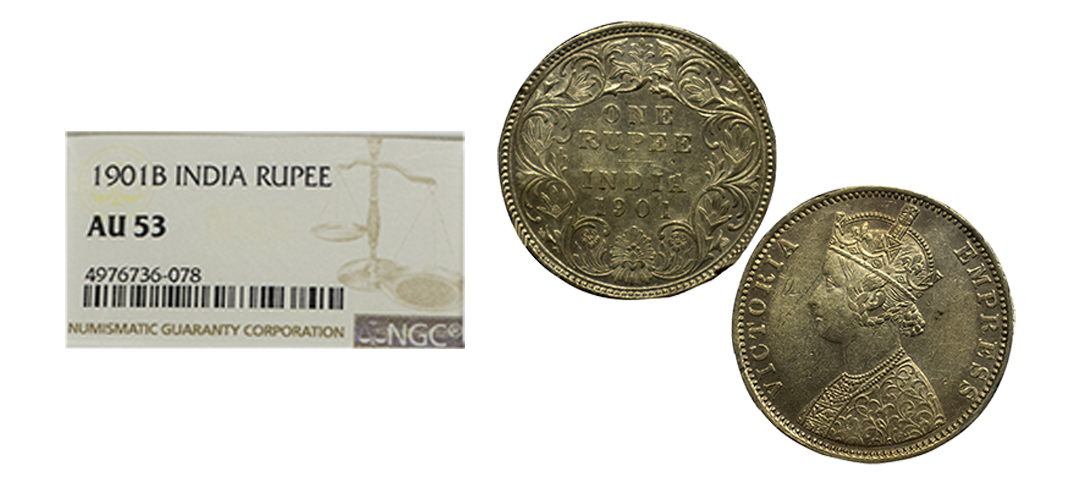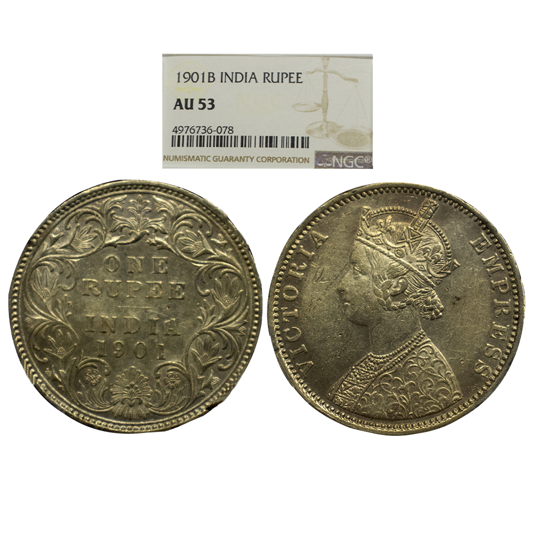 British India, Victoria Empress, Silver Rupee, 1901, Bombay Mint, Graded AU53 by NGC.