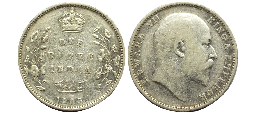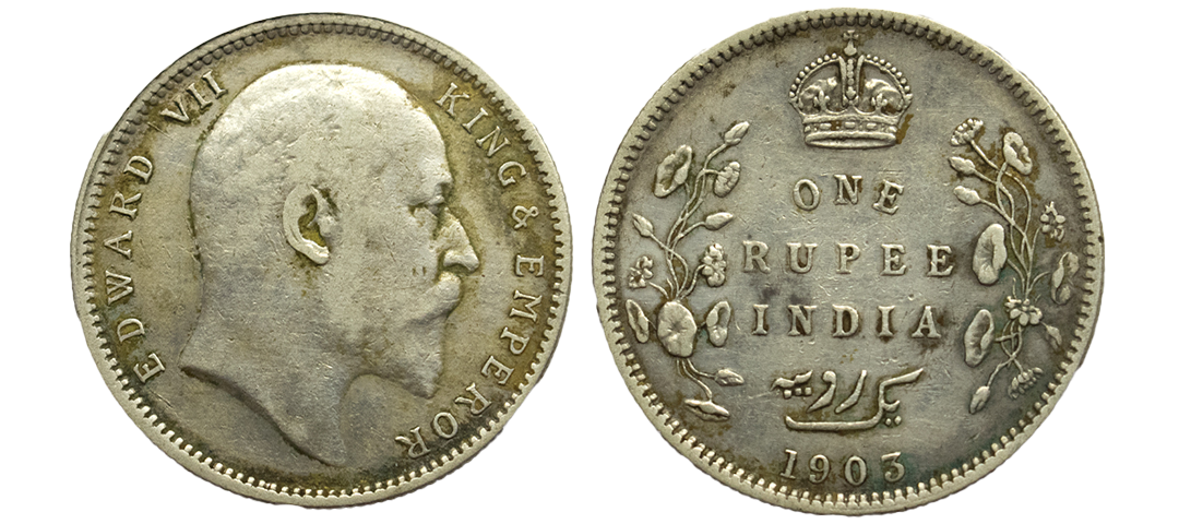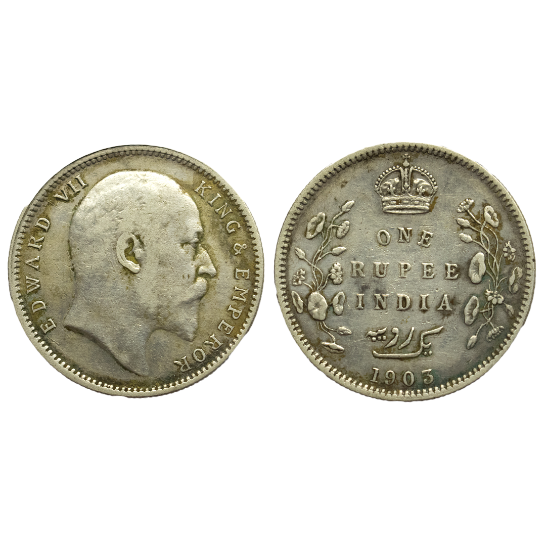 British India, Edward VII, Silver Rupeee, 1903, Calcutta Mint, # Diamonds instead of 5 in Persian Inscription, Very Fine+, Unlisted, Extremely Rare.