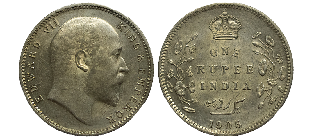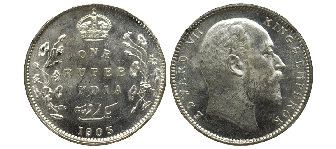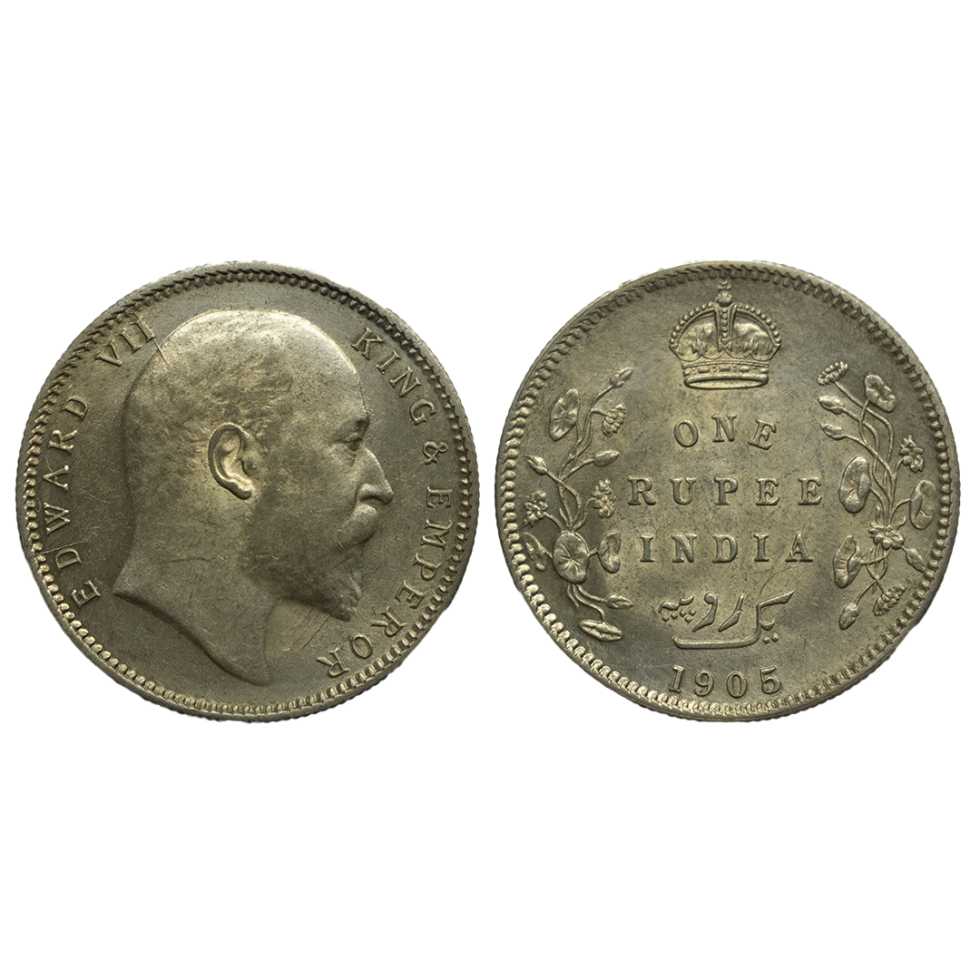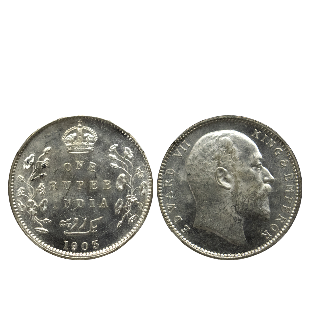 British India, Edward VII, Silver Rupee, 1905, Calcutta Mint, UNcirculated, Rare in grade.