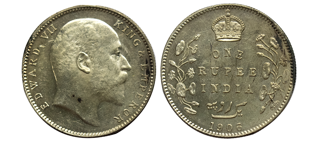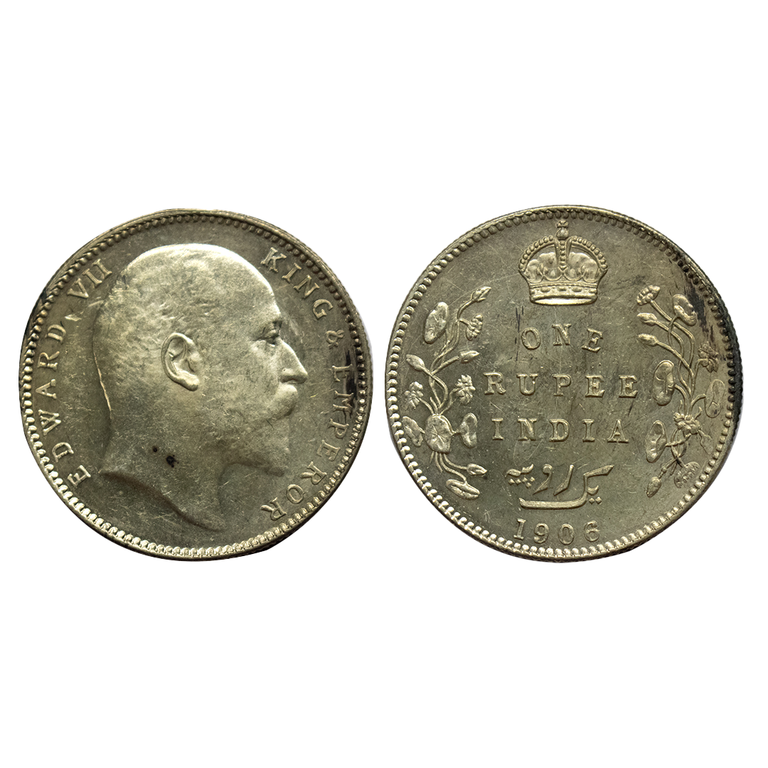 British India, Edward VII, Silver Rupee, 1906, Bombay Mint, B incuse, Dot on Stem, Uncirculated