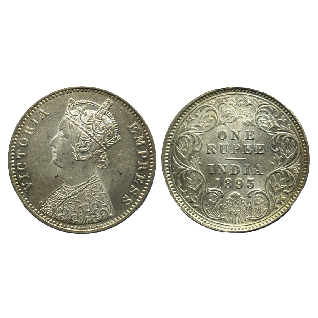 British India. Victoria Empress, Silver Rupee, 1893, Bombay Mint, Uncirculated, Scarce