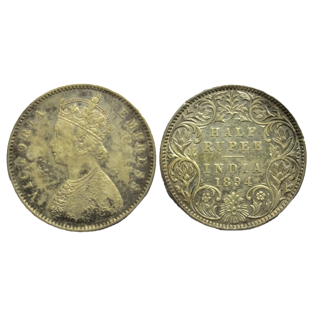 British India, Victoria Empress, Silver ½ Rupee, 1894, Bombay Mint, A/I/B incuse, Extremely Fine, Rare.