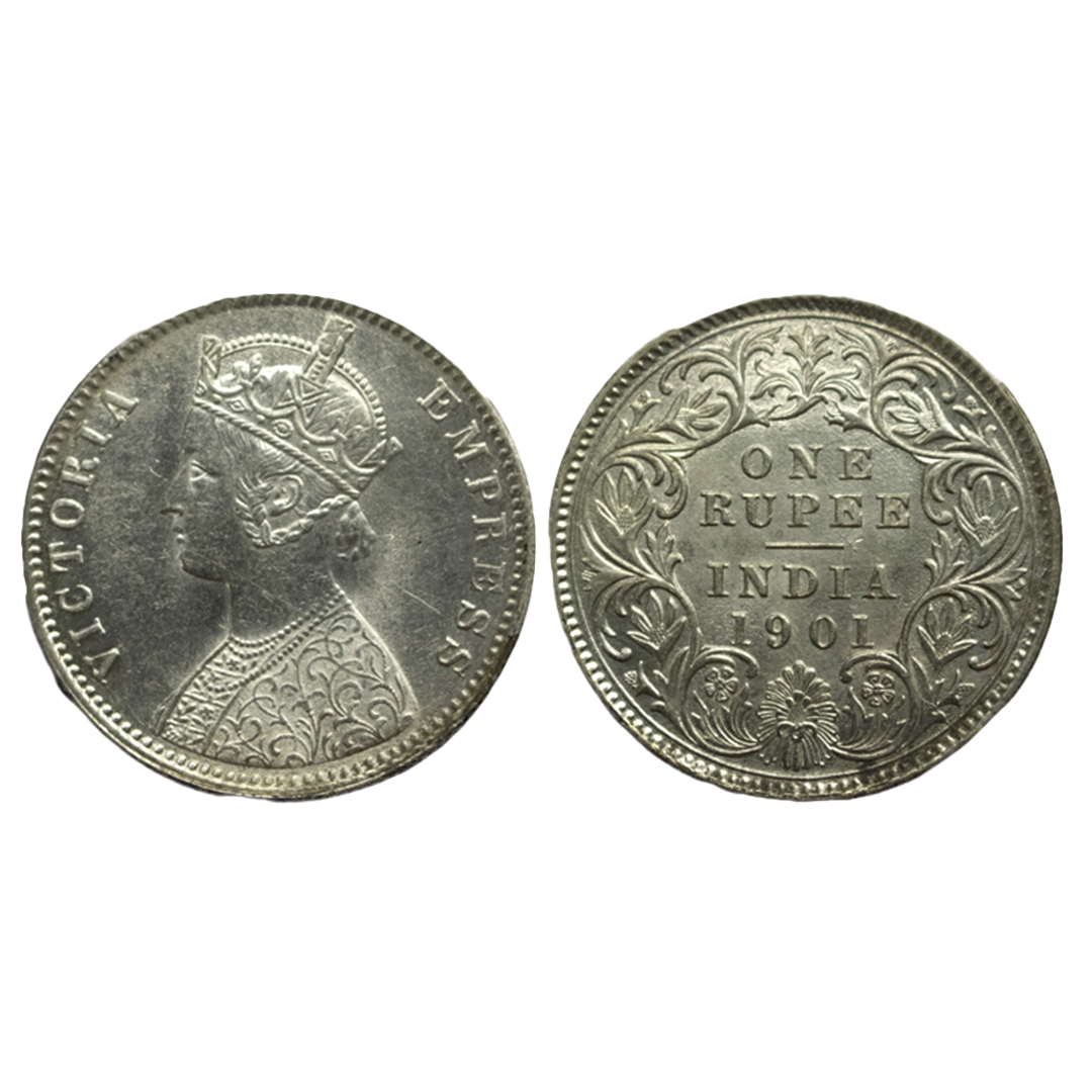 British India. Victoria Empress, Silver Rupee, 1901, Calcutta MInt, Uncirculated, Scarce.