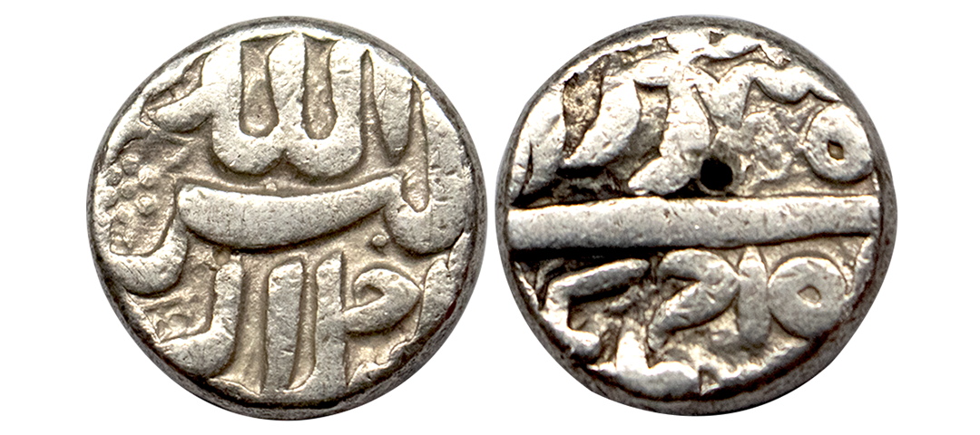 Akbar (AH 963-1014 / 1556-1605 AD), Silver Rupee, 11.36Grms, Dewal Bandar Mint, Ilahi type, Month Di, Year 4X, This mint is located in the province of Sind (near Karachi) and was an old river port. The mint of Dewal Bandar or Dewal as it was first read was published in a paper called "Some Novelties in Mughal Coins' published in the Numismatic Chronicle in 1896. (KM # 93.9).