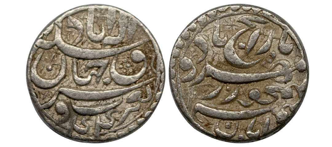 Akbar (AH 963-1014 / 1556-1605 AD), Silver Rupee, 11.36Grms, Dewal Bandar Mint, Ilahi type, Month Di, Year 4X, This mint is located in the province of Sind (near Karachi) and was an old river port. The mint of Dewal Bandar or Dewal as it was first read was published in a paper called "Some Novelties in Mughal Coins' published in the Numismatic Chronicle in 1896. (KM # 93.9).