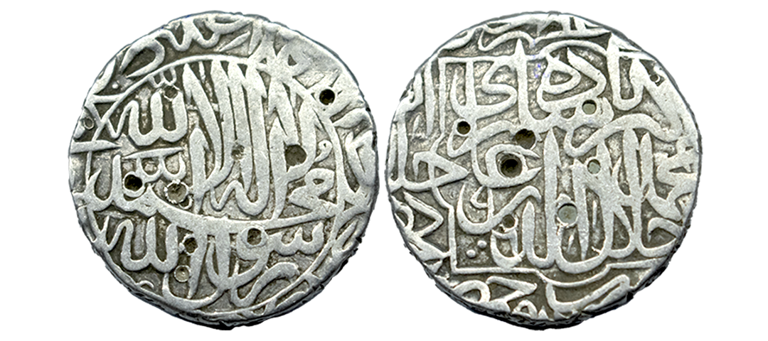 Akbar (AH 963-1014 / 1556-1605 AD), Silver Rupee, 11.36Grms, Dewal Bandar Mint, Ilahi type, Month Di, Year 4X, This mint is located in the province of Sind (near Karachi) and was an old river port. The mint of Dewal Bandar or Dewal as it was first read was published in a paper called "Some Novelties in Mughal Coins' published in the Numismatic Chronicle in 1896. (KM # 93.9).