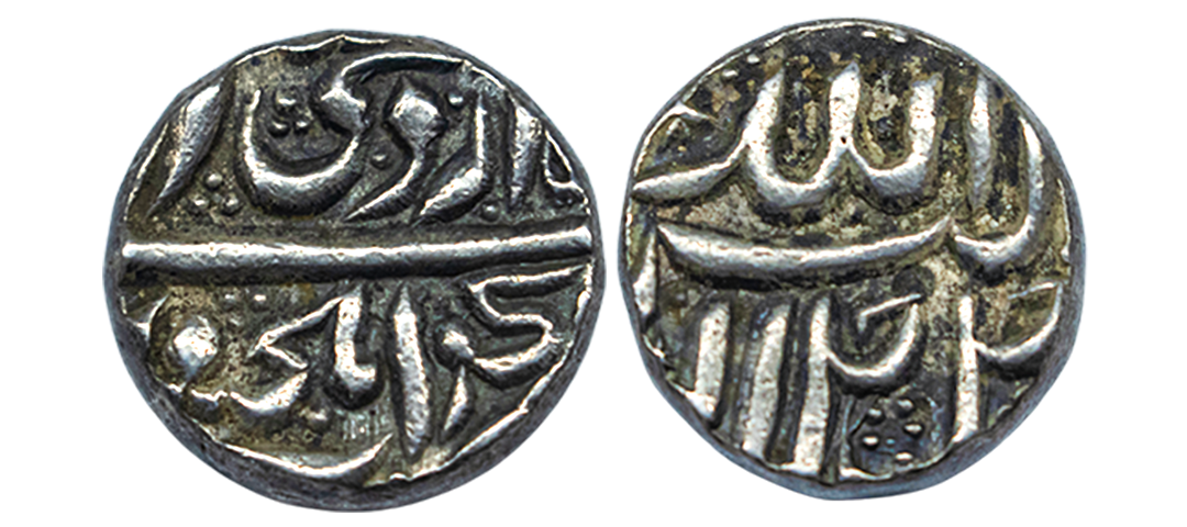 Akbar (AH 963-1014 / 1556-1605 AD), Silver Rupee, 11.36Grms, Dewal Bandar Mint, Ilahi type, Month Di, Year 4X, This mint is located in the province of Sind (near Karachi) and was an old river port. The mint of Dewal Bandar or Dewal as it was first read was published in a paper called "Some Novelties in Mughal Coins' published in the Numismatic Chronicle in 1896. (KM # 93.9).