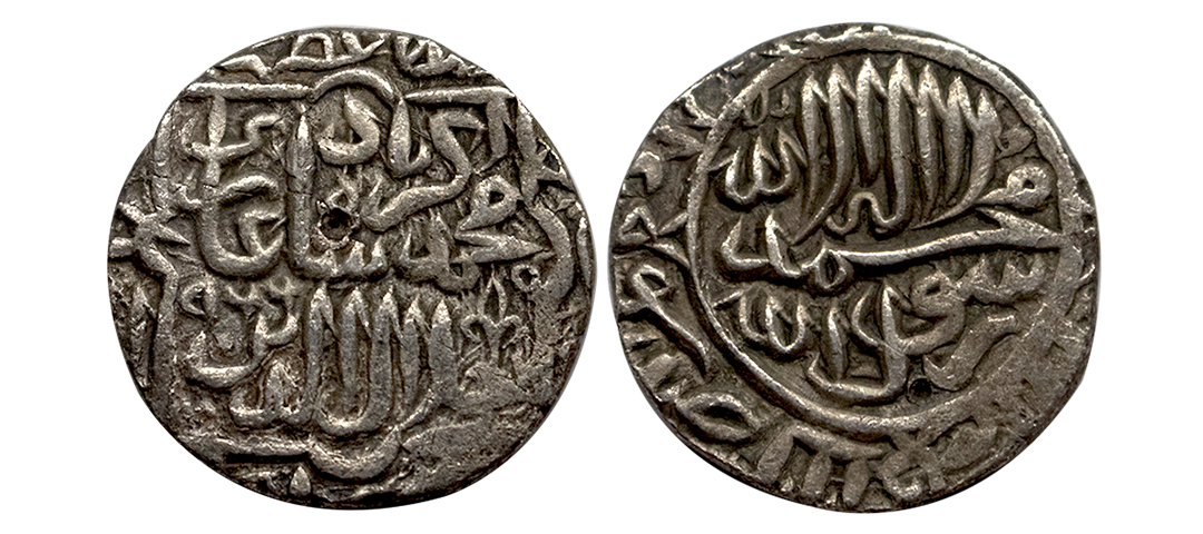 Akbar (AH 963-1014 / 1556-1605 AD), Silver Rupee, 11.36Grms, Dewal Bandar Mint, Ilahi type, Month Di, Year 4X, This mint is located in the province of Sind (near Karachi) and was an old river port. The mint of Dewal Bandar or Dewal as it was first read was published in a paper called "Some Novelties in Mughal Coins' published in the Numismatic Chronicle in 1896. (KM # 93.9).