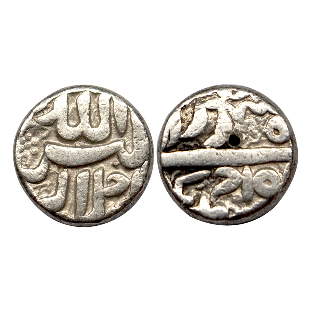 Akbar (AH 963-1014 / 1556-1605 AD), Silver Rupee, 11.36Grms, Dewal Bandar Mint, Ilahi type, Month Di, Year 4X, This mint is located in the province of Sind (near Karachi) and was an old river port. The mint of Dewal Bandar or Dewal as it was first read was published in a paper called "Some Novelties in Mughal Coins' published in the Numismatic Chronicle in 1896. (KM # 93.9).