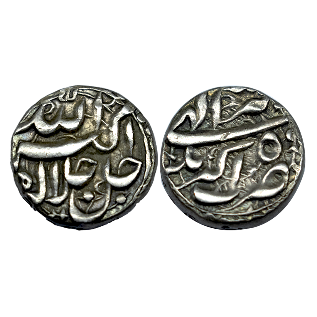 Akbar (AH 963-1014 / 1556-1605 AD), Silver Rupee, 11.36Grms, Dewal Bandar Mint, Ilahi type, Month Di, Year 4X, This mint is located in the province of Sind (near Karachi) and was an old river port. The mint of Dewal Bandar or Dewal as it was first read was published in a paper called "Some Novelties in Mughal Coins' published in the Numismatic Chronicle in 1896. (KM # 93.9).