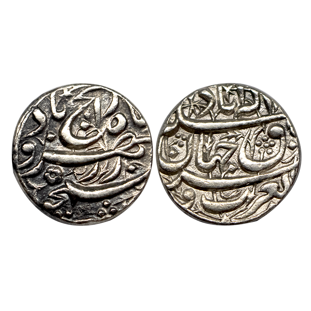 Akbar (AH 963-1014 / 1556-1605 AD), Silver Rupee, 11.36Grms, Dewal Bandar Mint, Ilahi type, Month Di, Year 4X, This mint is located in the province of Sind (near Karachi) and was an old river port. The mint of Dewal Bandar or Dewal as it was first read was published in a paper called "Some Novelties in Mughal Coins' published in the Numismatic Chronicle in 1896. (KM # 93.9).