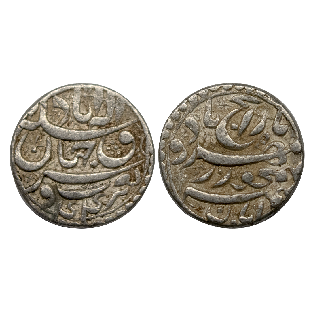 Akbar (AH 963-1014 / 1556-1605 AD), Silver Rupee, 11.36Grms, Dewal Bandar Mint, Ilahi type, Month Di, Year 4X, This mint is located in the province of Sind (near Karachi) and was an old river port. The mint of Dewal Bandar or Dewal as it was first read was published in a paper called "Some Novelties in Mughal Coins' published in the Numismatic Chronicle in 1896. (KM # 93.9).