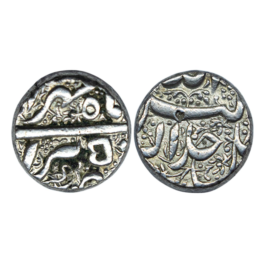 Akbar (AH 963-1014 / 1556-1605 AD), Silver Rupee, 11.36Grms, Dewal Bandar Mint, Ilahi type, Month Di, Year 4X, This mint is located in the province of Sind (near Karachi) and was an old river port. The mint of Dewal Bandar or Dewal as it was first read was published in a paper called "Some Novelties in Mughal Coins' published in the Numismatic Chronicle in 1896. (KM # 93.9).