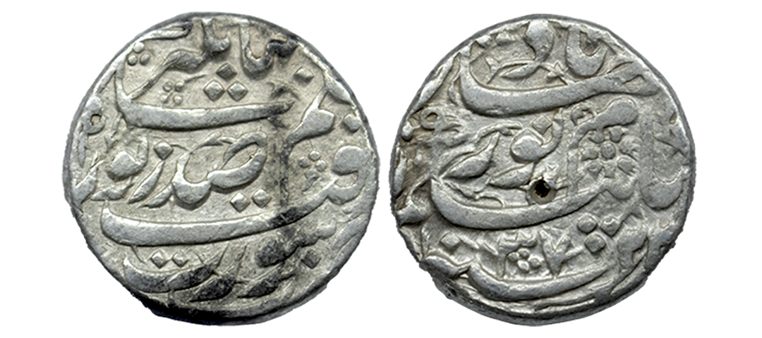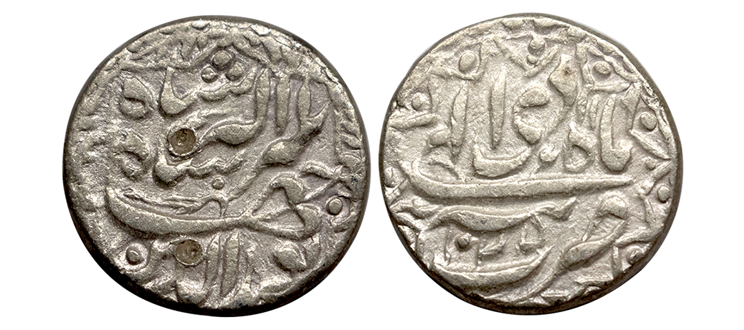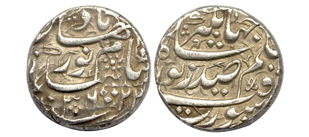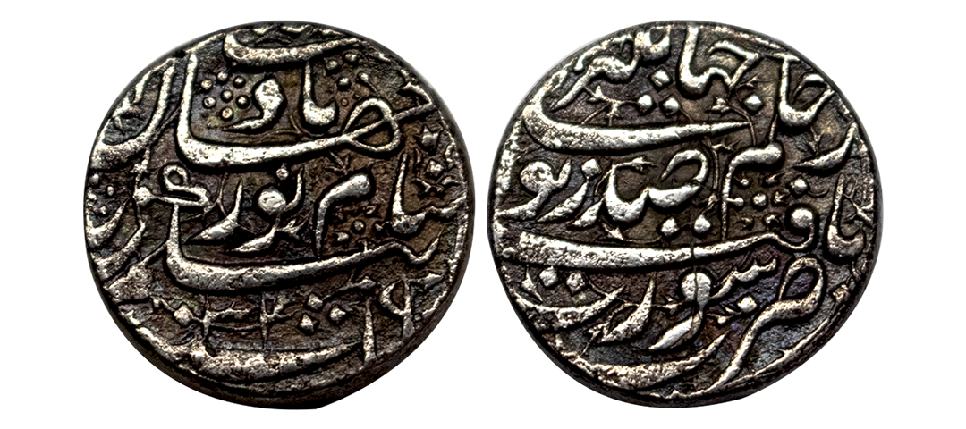 Mughals, Jahangir (AH 1014-1037 / AD 1605-1627), Silver Rupee, Ahmadnagar Mint, KM # 141.1 Obverse : kalima shahada, Zarb Ahmadnagar at bottom. Reverse :