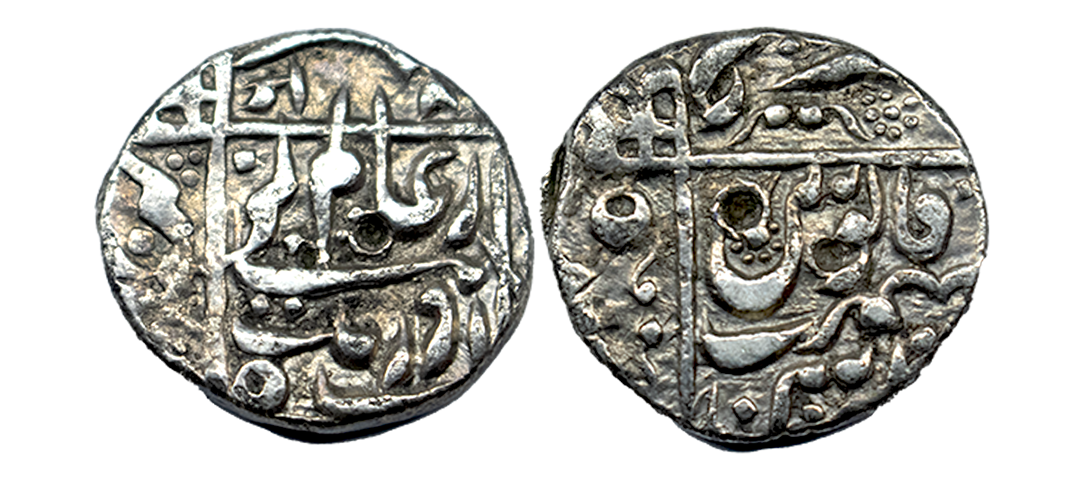 Murad Bakhsh (AH 1068 / 1658 AD), Silver Rupee, 11.48Grms, Khambayat ( very partly visible) Mint, Mint at Top, This is a rare issue with the word "Muhammad" omitted from the ruler's name and just written as "Murad Bakhsh" instead of the regular "Muhammad Murad Bakhsh" ,both sides central inscription within square knots at corners. (KM # 272.3). Very Fine+, Exceedingly Rare. Similar Specimen Sold in Marudhar Arts, Printed Auction #17 in the year 2016 for a hammer price of 80000 INR.