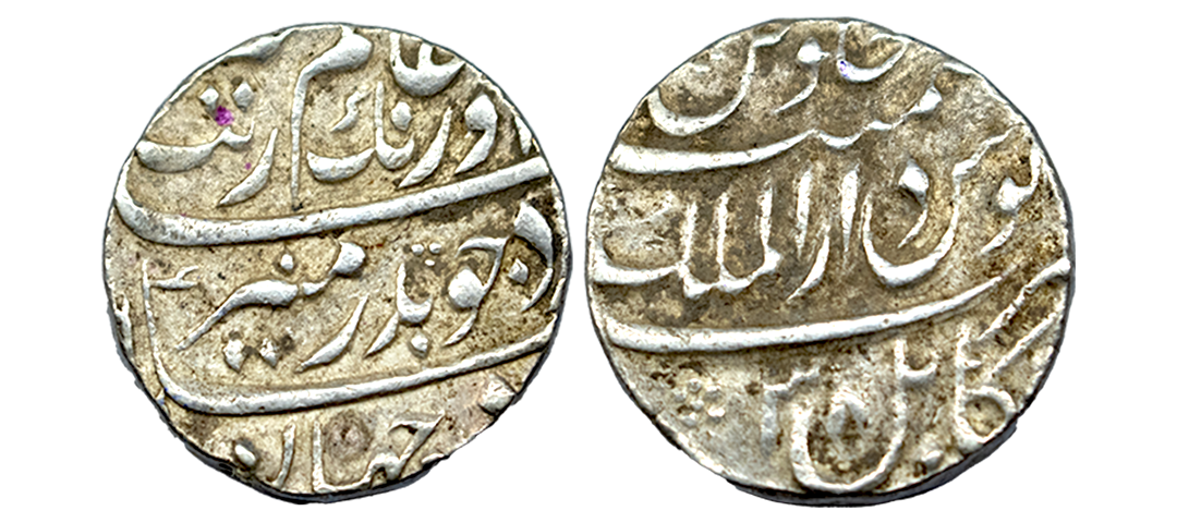 Murad Bakhsh (AH 1068 / 1658 AD), Silver Rupee, 11.48Grms, Khambayat ( very partly visible) Mint, Mint at Top, This is a rare issue with the word "Muhammad" omitted from the ruler's name and just written as "Murad Bakhsh" instead of the regular "Muhammad Murad Bakhsh" ,both sides central inscription within square knots at corners. (KM # 272.3). Very Fine+, Exceedingly Rare. Similar Specimen Sold in Marudhar Arts, Printed Auction #17 in the year 2016 for a hammer price of 80000 INR.