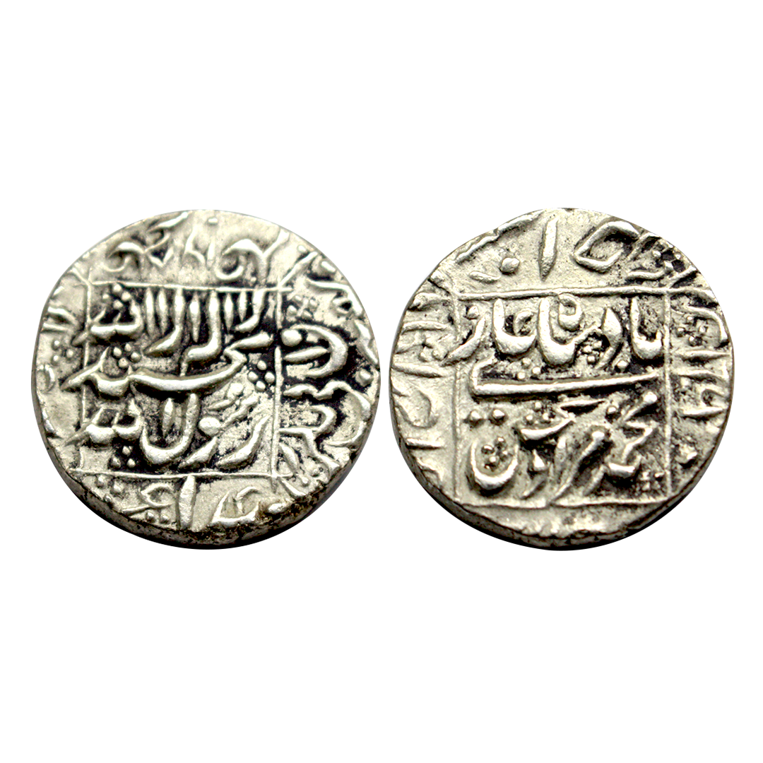 Murad Bakhsh (AH 1068 / 1658 AD), Silver Rupee, 11.48Grms, Khambayat ( very partly visible) Mint, Mint at Top, This is a rare issue with the word "Muhammad" omitted from the ruler's name and just written as "Murad Bakhsh" instead of the regular "Muhammad Murad Bakhsh" ,both sides central inscription within square knots at corners. (KM # 272.3). Very Fine+, Exceedingly Rare. Similar Specimen Sold in Marudhar Arts, Printed Auction #17 in the year 2016 for a hammer price of 80000 INR.