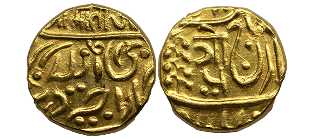Jodhpur, Umaid Singh (c. 1918-1947 AD), Gold Mohur, "SRI MATA JI" 11.00Grms, in the name of George VI British Emperor, ‘Mataji’ in Nagari with dagger on obv., Nagari letter ‘Go’ as a daroga mark on rev. (Lingen # J.17.03.01). Extremely Fine.