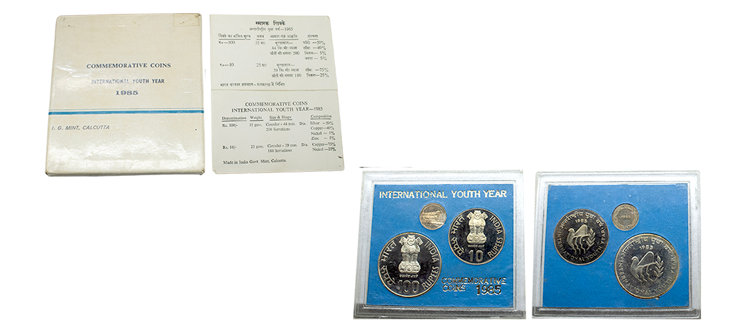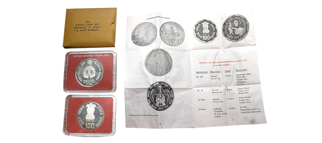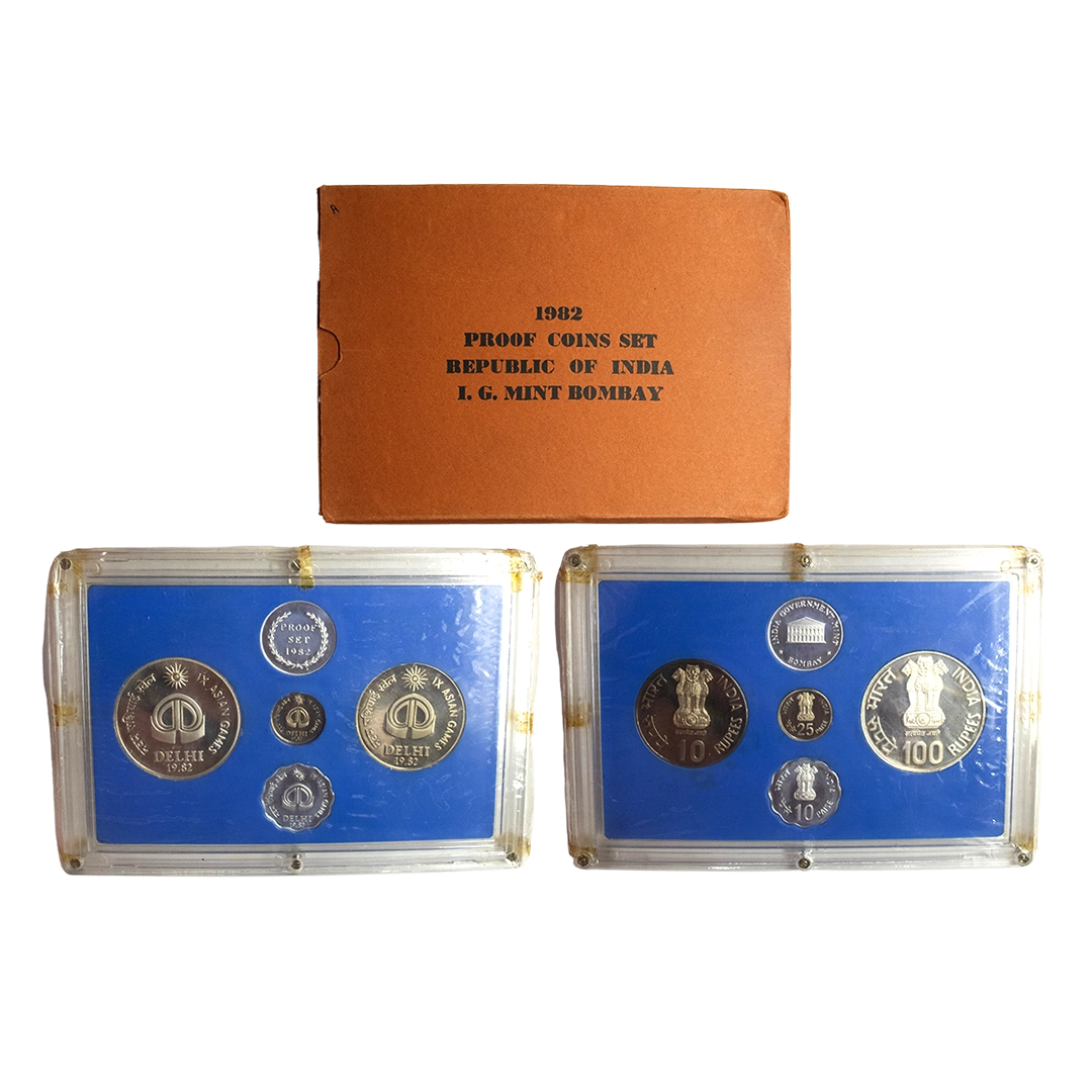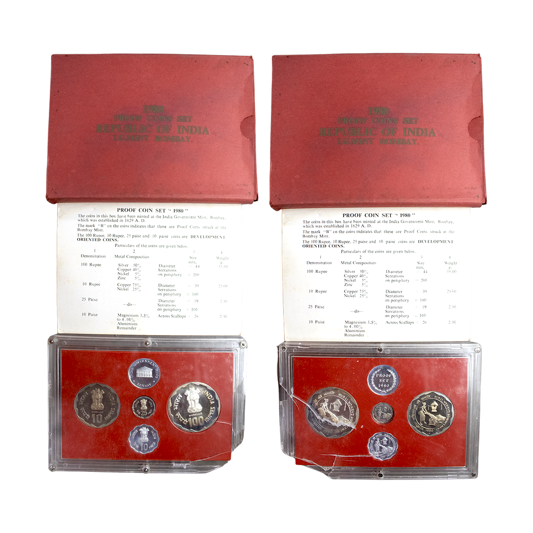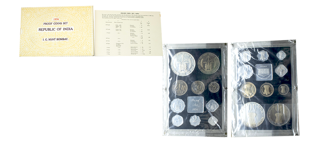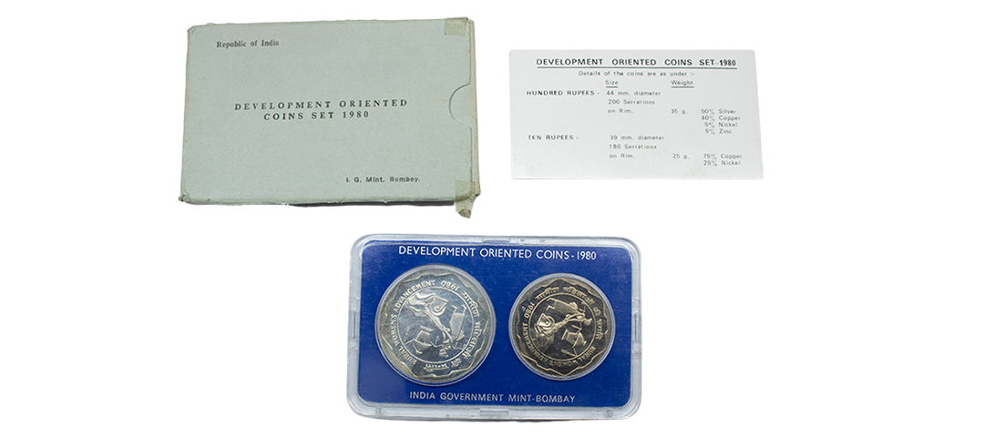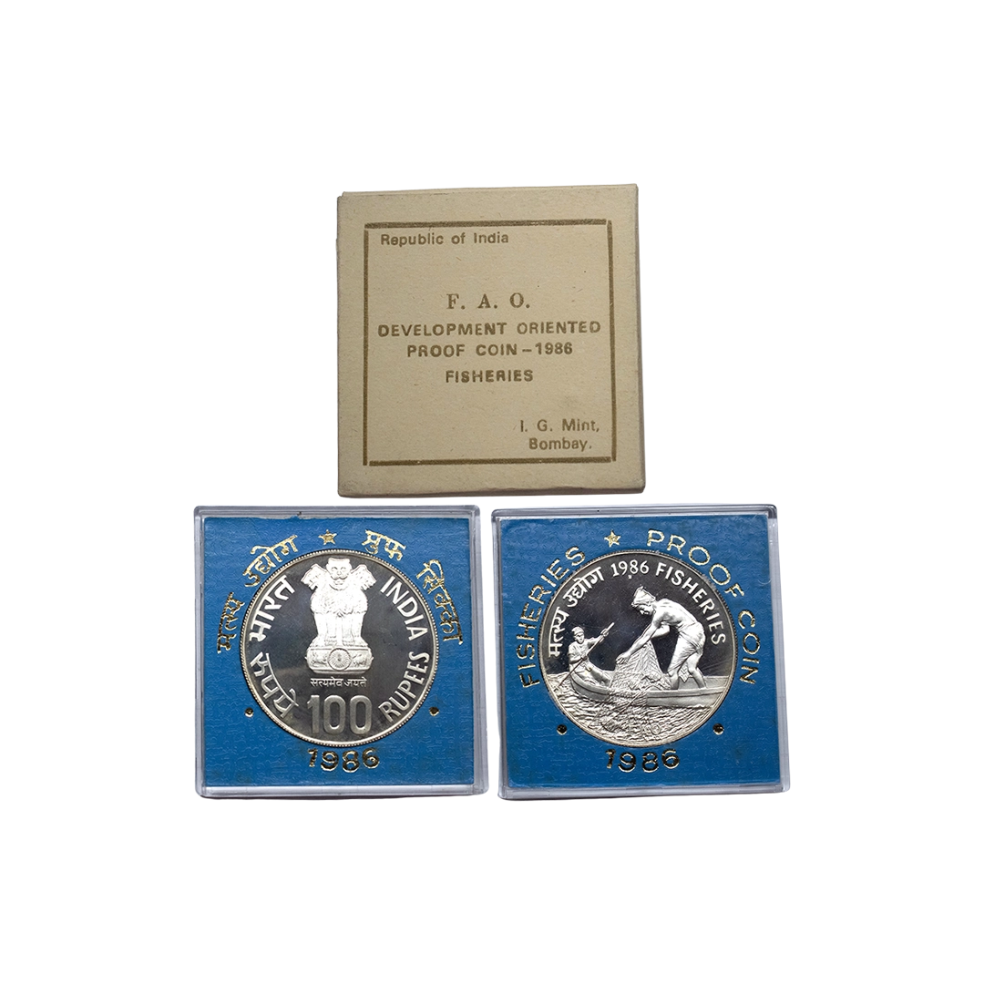 1981, Proof Set, PIE-FORT (Piedfort) Coin, International Year of the Child, Silver 100 Rupees, 58.32grams, Bombay Mint, (RB # 90), in immaculate condition with original packing in an acrylic case with outer cover and certificate, the coin is in mirror glaze cameo-like finish, proof, Extremely Rare. Note: "PIEFORT" or "PIEDFORT" are coins struck in a higher weight standard than the regular issue, on a thick planchet. This commemorative issue is the only type issued by the Indian Government Mint so far.