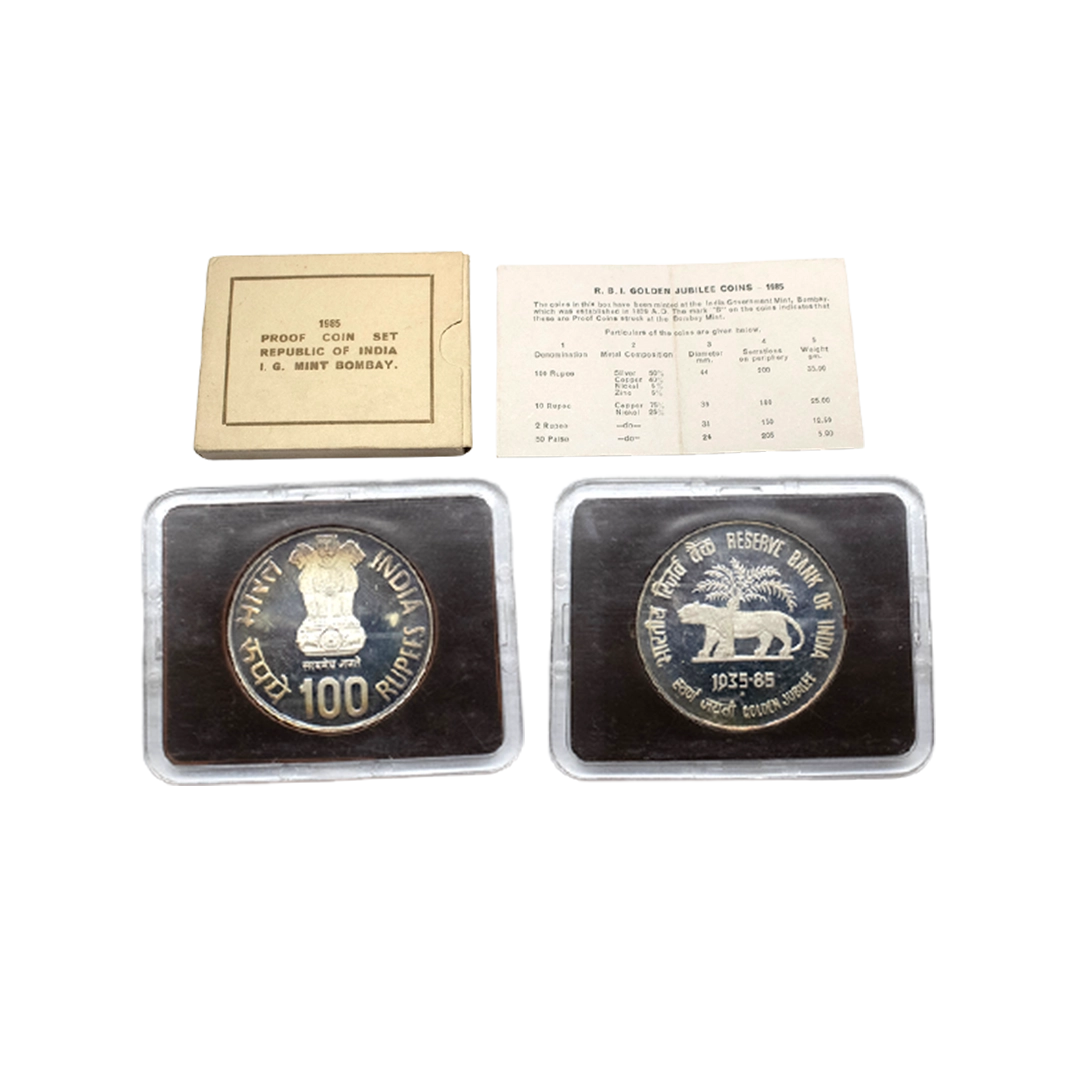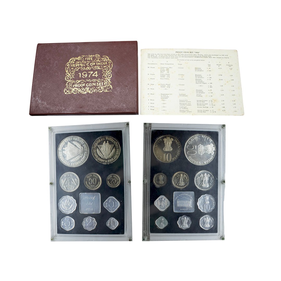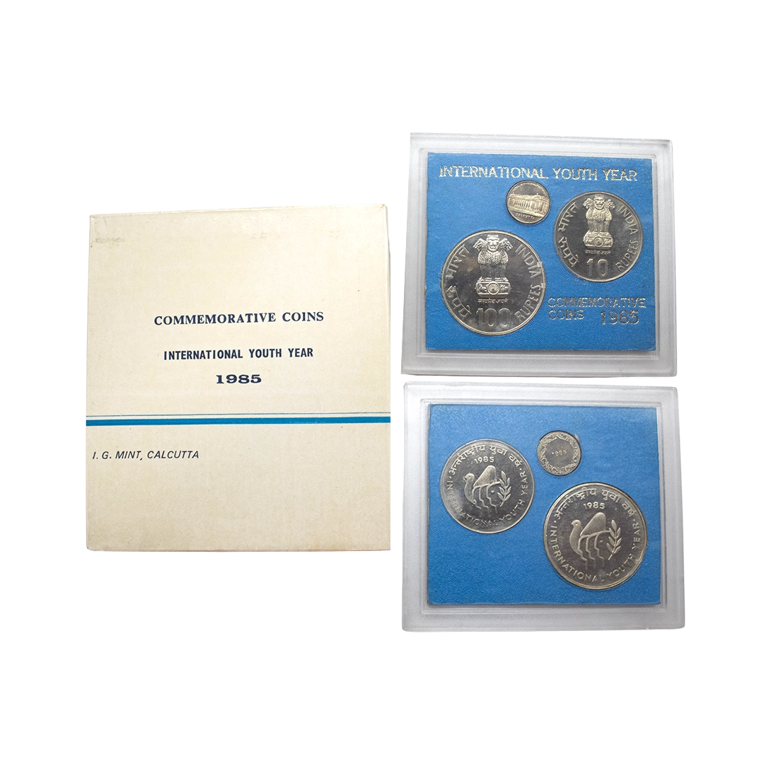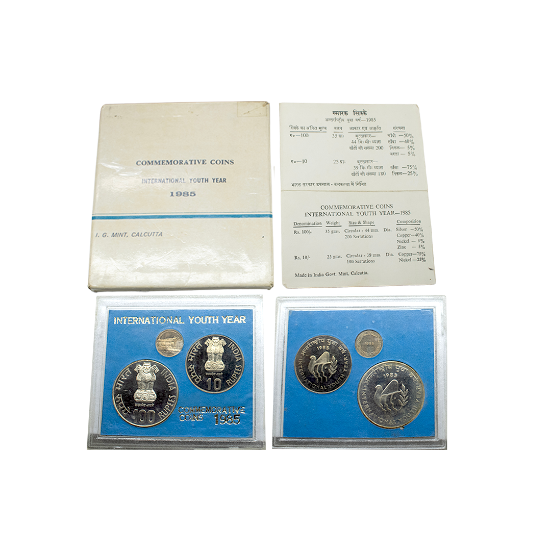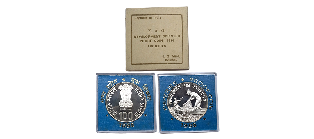 1981, Proof Set, PIE-FORT (Piedfort) Coin, International Year of the Child, Silver 100 Rupees, 58.32grams, Bombay Mint, (RB # 90), in immaculate condition with original packing in an acrylic case with outer cover and certificate, the coin is in mirror glaze cameo-like finish, proof, Extremely Rare. Note: "PIEFORT" or "PIEDFORT" are coins struck in a higher weight standard than the regular issue, on a thick planchet. This commemorative issue is the only type issued by the Indian Government Mint so far.