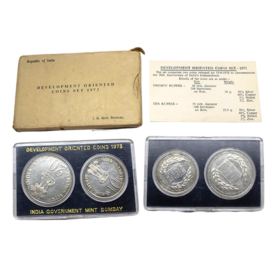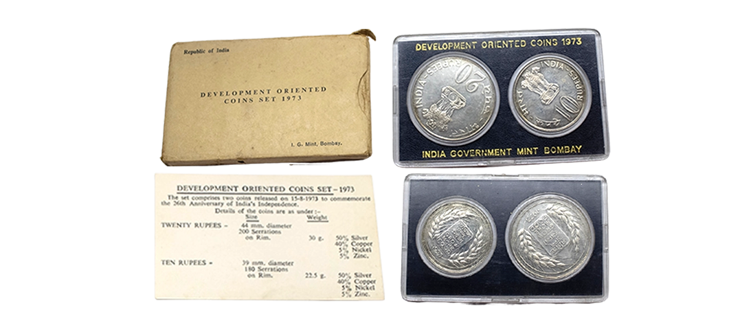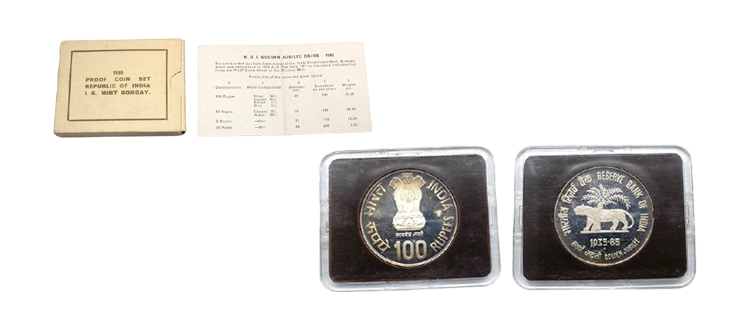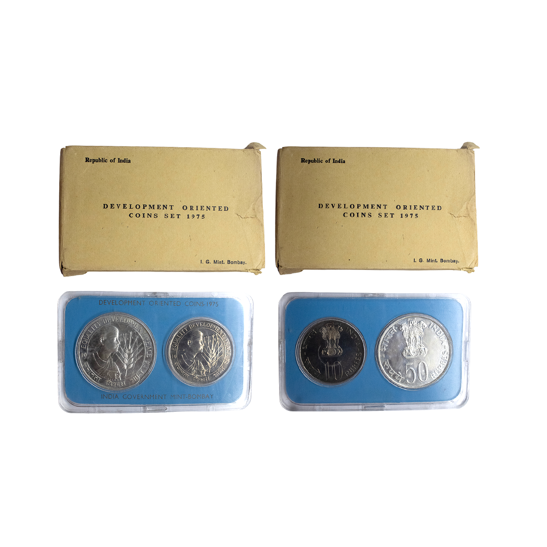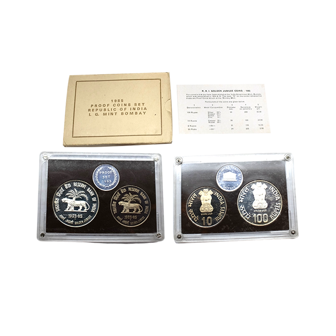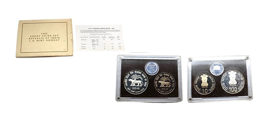 1981, Proof Set, PIE-FORT (Piedfort) Coin, International Year of the Child, Silver 100 Rupees, 58.32grams, Bombay Mint, (RB # 90), in immaculate condition with original packing in an acrylic case with outer cover and certificate, the coin is in mirror glaze cameo-like finish, proof, Extremely Rare. Note: "PIEFORT" or "PIEDFORT" are coins struck in a higher weight standard than the regular issue, on a thick planchet. This commemorative issue is the only type issued by the Indian Government Mint so far.