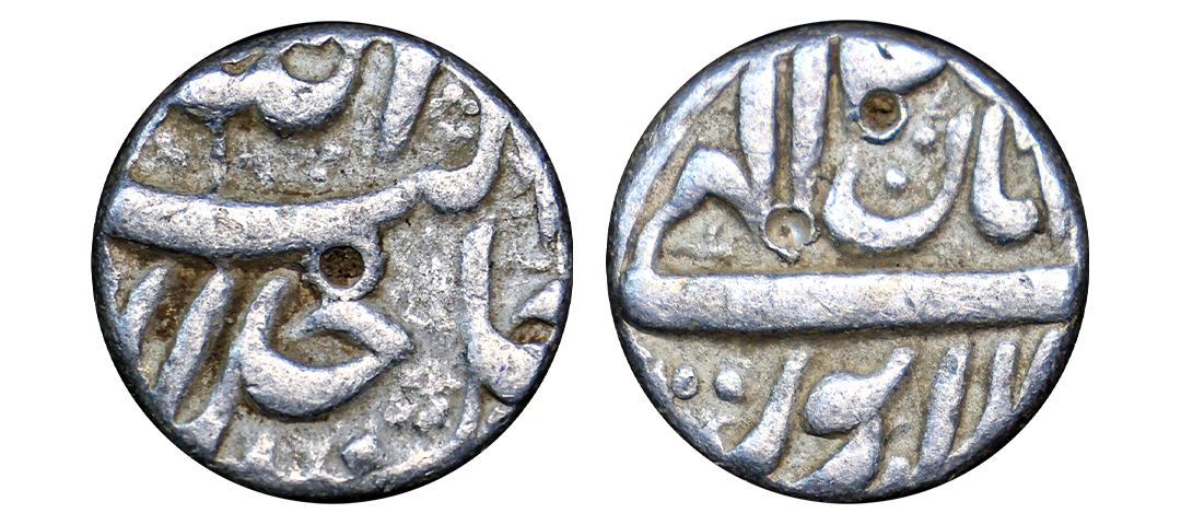 Akbar (AH 963-1014, 1556-1605 AD), Silver Rupee, 11.36 gms, Rebellion Issue of Jahangir, Jahangir as governor at Allahabad, Allahabad Mint, “Bagharb -O- Sharq” couplet, Obv: Hamesha hamchu z're Mihr wa Mah Rayijbad, Rev: bagharb-wa-Sharq jahan sikka Allahabad, KM # 97.1, extremely fine, very scarce.