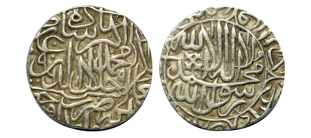 Akbar (AH 963-1014, 1556-1605 AD), Silver Rupee, 11.36 gms, Rebellion Issue of Jahangir, Jahangir as governor at Allahabad, Allahabad Mint, “Bagharb -O- Sharq” couplet, Obv: Hamesha hamchu z're Mihr wa Mah Rayijbad, Rev: bagharb-wa-Sharq jahan sikka Allahabad, KM # 97.1, extremely fine, very scarce.