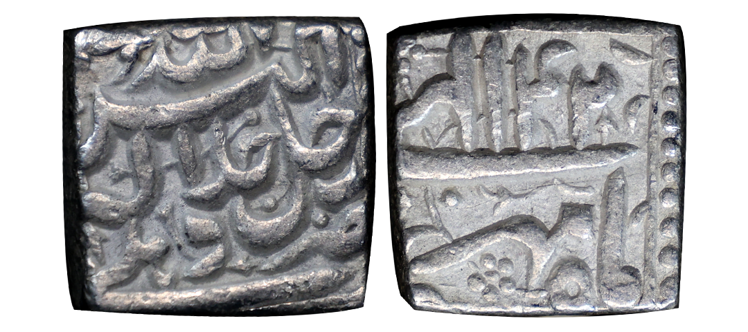 Akbar (AH 963-1014, 1556-1605 AD), Silver Rupee, 11.36 gms, Rebellion Issue of Jahangir, Jahangir as governor at Allahabad, Allahabad Mint, “Bagharb -O- Sharq” couplet, Obv: Hamesha hamchu z're Mihr wa Mah Rayijbad, Rev: bagharb-wa-Sharq jahan sikka Allahabad, KM # 97.1, extremely fine, very scarce.