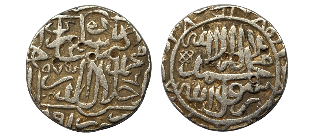Akbar (AH 963-1014, 1556-1605 AD), Silver Rupee, 11.36 gms, Rebellion Issue of Jahangir, Jahangir as governor at Allahabad, Allahabad Mint, “Bagharb -O- Sharq” couplet, Obv: Hamesha hamchu z're Mihr wa Mah Rayijbad, Rev: bagharb-wa-Sharq jahan sikka Allahabad, KM # 97.1, extremely fine, very scarce.