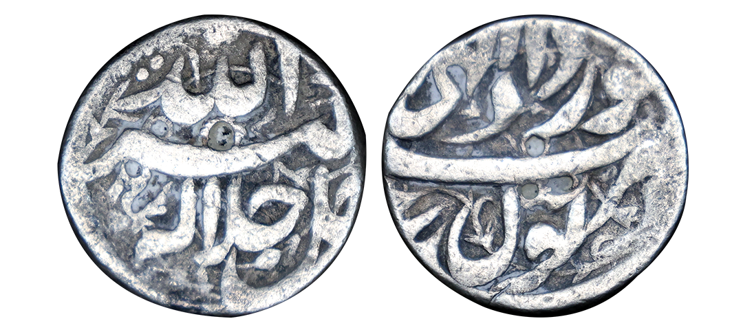 Akbar (AH 963-1014, 1556-1605 AD), Silver Rupee, 11.36 gms, Rebellion Issue of Jahangir, Jahangir as governor at Allahabad, Allahabad Mint, “Bagharb -O- Sharq” couplet, Obv: Hamesha hamchu z're Mihr wa Mah Rayijbad, Rev: bagharb-wa-Sharq jahan sikka Allahabad, KM # 97.1, extremely fine, very scarce.