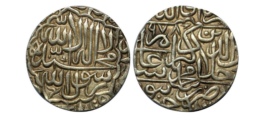 Akbar (AH 963-1014, 1556-1605 AD), Silver Rupee, 11.36 gms, Rebellion Issue of Jahangir, Jahangir as governor at Allahabad, Allahabad Mint, “Bagharb -O- Sharq” couplet, Obv: Hamesha hamchu z're Mihr wa Mah Rayijbad, Rev: bagharb-wa-Sharq jahan sikka Allahabad, KM # 97.1, extremely fine, very scarce.