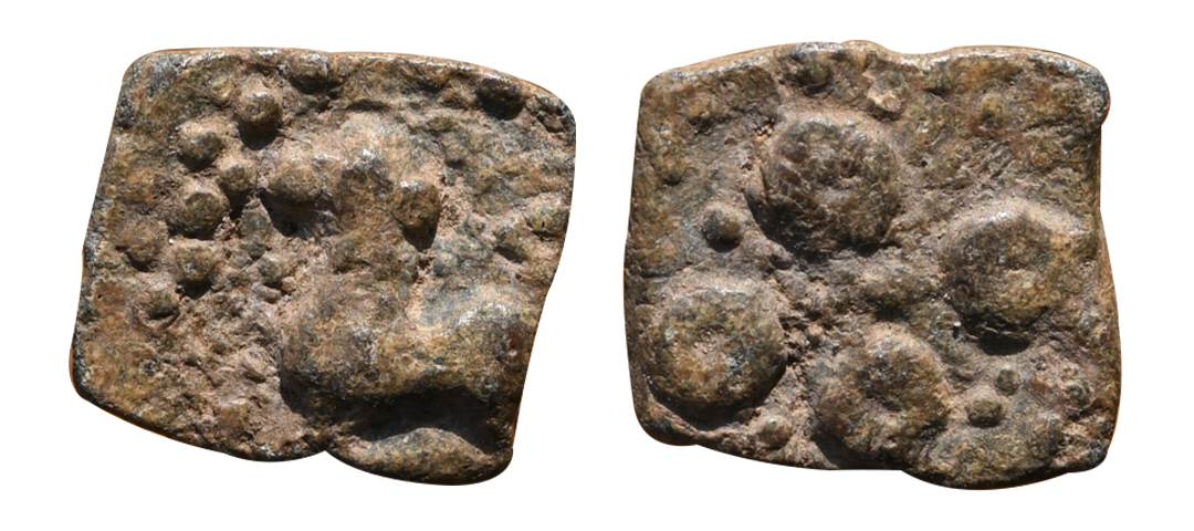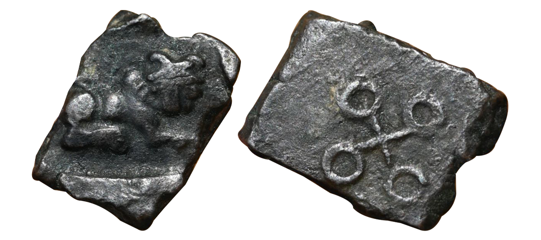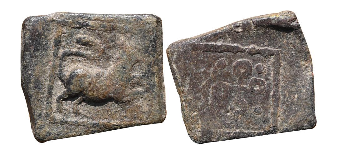 Ancient, Satavahana (1st century BC), Lead Unit, 1.03 gms, Anonymous Issue from Wai region, Obv. Lion to left, rev. Ujjaini symbol within square dotted border, exact type unlisted, very fine+, very rare.