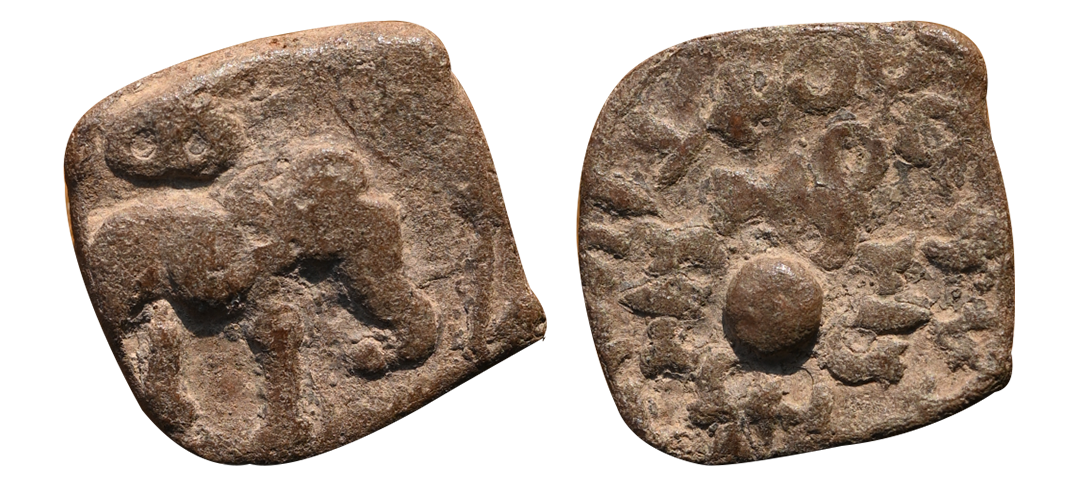 Ancient, Satavahanas, Sri Satakarni (c. 1st Century BC), Lead Unit, 3.15 gms, Obv. elephant to right 3-arched hill above, Rev. brahmi Legend ‘SaTaKaNiSa’ followed by ujjaini symbol & bold nandipada symbol in centre, Unlisted, very fine+, very rare.