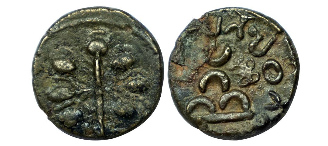 Satavahanas, (1st Century BC), Copper Unit, 3.57 gms, Obv. Lion to left with partial legends around, Rev. Railed tree, double struck on reverse, very fine, Unlisted Type, very rare.