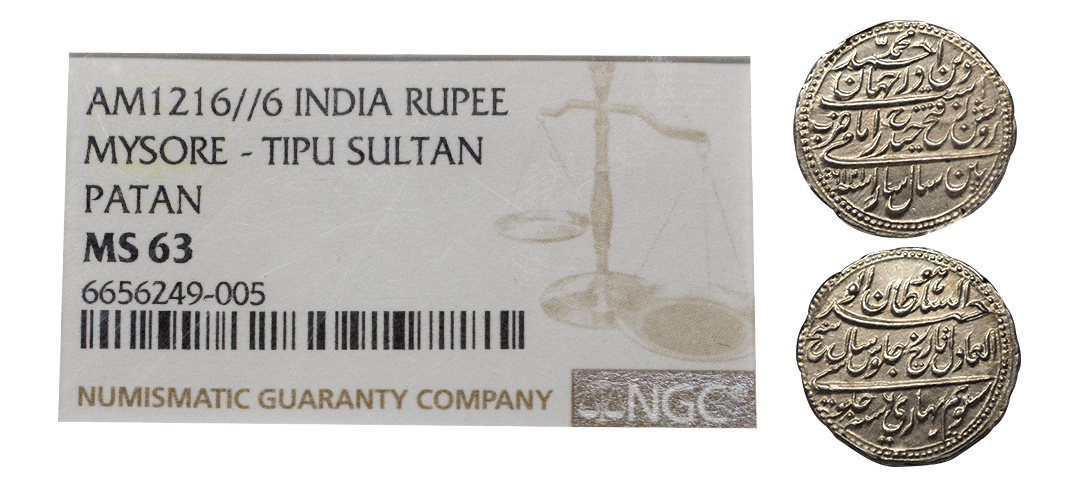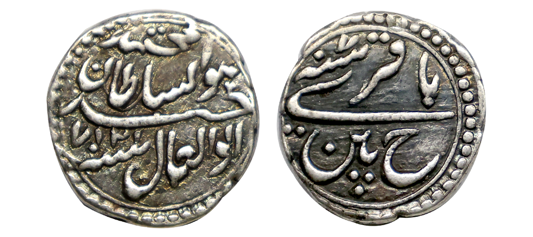 Mysore,Tipu Sultan (1787-1799 AD), Silver ¼ Rupee (Bagri), 2.18g, Pattan Mint, AM 1217/RY 7, KM D125. Very Fine+, Loop Removed, Loop was on the edge and was removed professionally without damaging the coin or the legends, Very Rare.