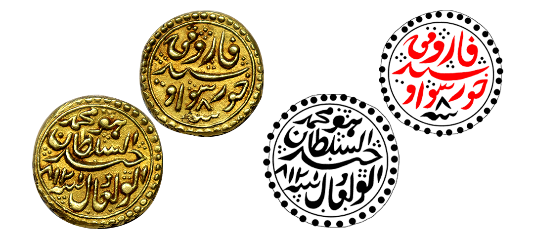Mysore Tipu Sultan (AM 1215-1227, 1787-1799 AD), Gold Pagoda, 3.41 gms, Khurshed Sawad (Dharwar) Mint, AM 1218, RY 8, Obv: hu sultan ul-waheed al adil & Muhammad at the top, Rev: faruqi, Khurshed Sawad Mint & sana 7, KM # 99a, about extremely fine, very rare.