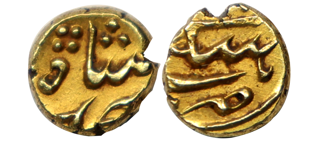 Mysore Tipu Sultan (AM 1215-1227, 1787-1799 AD), Gold Pagoda, 3.41 gms, Khurshed Sawad (Dharwar) Mint, AM 1218, RY 8, Obv: hu sultan ul-waheed al adil & Muhammad at the top, Rev: faruqi, Khurshed Sawad Mint & sana 7, KM # 99a, about extremely fine, very rare.