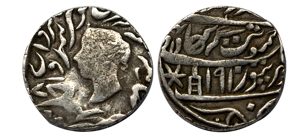 Jaipur State, Sawai Jaipur Mint, Silver Nazarana Rupee, AH 1166/6 RY, In the name of Ahmad Shah Bahadur, Obv: Persian legend "Sikka Mubarak Badshah Ghazi Ahmad Shah Bahadur", Rev: Persian legend "Sana 6 julus" & "zarb Sawai Jaipur" at the bottom, (KM #9), graded by NGC as AU58, Very Rare.