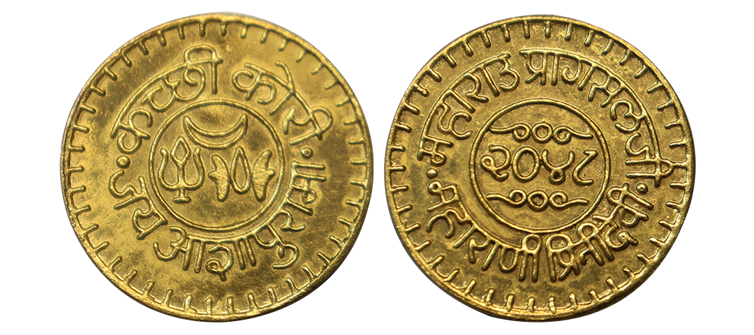 Jaipur State, Sawai Jaipur Mint, Silver Nazarana Rupee, AH 1166/6 RY, In the name of Ahmad Shah Bahadur, Obv: Persian legend "Sikka Mubarak Badshah Ghazi Ahmad Shah Bahadur", Rev: Persian legend "Sana 6 julus" & "zarb Sawai Jaipur" at the bottom, (KM #9), graded by NGC as AU58, Very Rare.