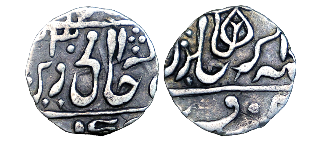 Jaipur State, Sawai Jaipur Mint, Silver Nazarana Rupee, AH 1166/6 RY, In the name of Ahmad Shah Bahadur, Obv: Persian legend "Sikka Mubarak Badshah Ghazi Ahmad Shah Bahadur", Rev: Persian legend "Sana 6 julus" & "zarb Sawai Jaipur" at the bottom, (KM #9), graded by NGC as AU58, Very Rare.