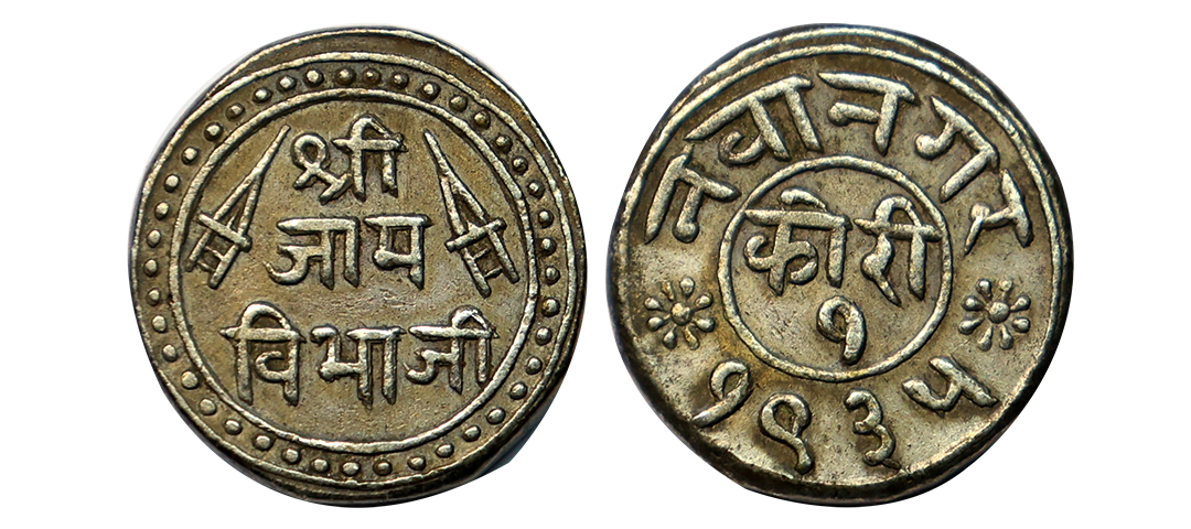 Jaipur State, Sawai Jaipur Mint, Silver Nazarana Rupee, AH 1166/6 RY, In the name of Ahmad Shah Bahadur, Obv: Persian legend "Sikka Mubarak Badshah Ghazi Ahmad Shah Bahadur", Rev: Persian legend "Sana 6 julus" & "zarb Sawai Jaipur" at the bottom, (KM #9), graded by NGC as AU58, Very Rare.