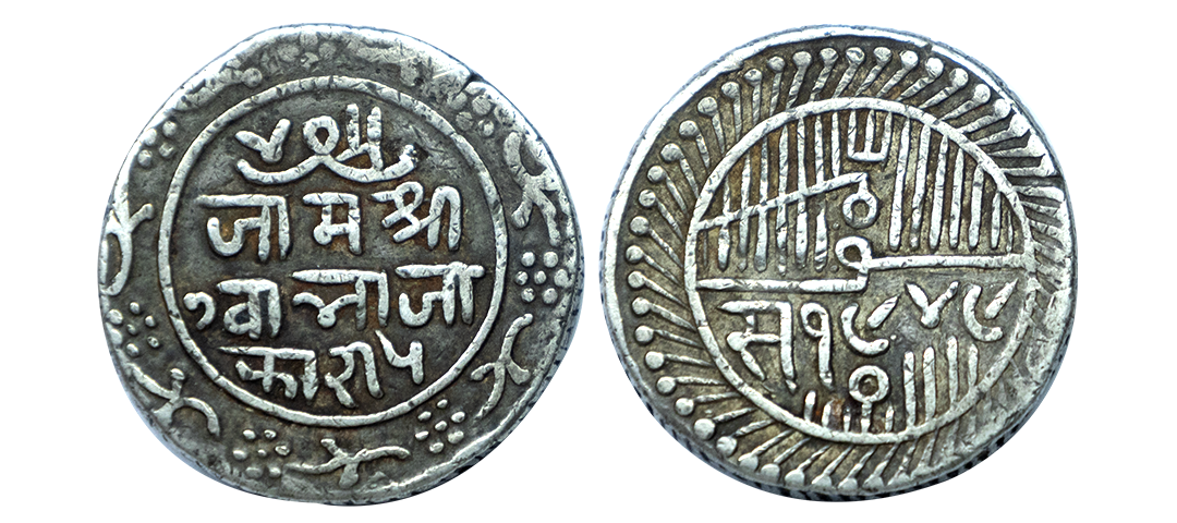 Jaipur State, Sawai Jaipur Mint, Silver Nazarana Rupee, AH 1166/6 RY, In the name of Ahmad Shah Bahadur, Obv: Persian legend "Sikka Mubarak Badshah Ghazi Ahmad Shah Bahadur", Rev: Persian legend "Sana 6 julus" & "zarb Sawai Jaipur" at the bottom, (KM #9), graded by NGC as AU58, Very Rare.