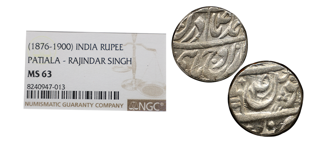 Jaipur State, Sawai Jaipur Mint, Silver Nazarana Rupee, AH 1166/6 RY, In the name of Ahmad Shah Bahadur, Obv: Persian legend "Sikka Mubarak Badshah Ghazi Ahmad Shah Bahadur", Rev: Persian legend "Sana 6 julus" & "zarb Sawai Jaipur" at the bottom, (KM #9), graded by NGC as AU58, Very Rare.