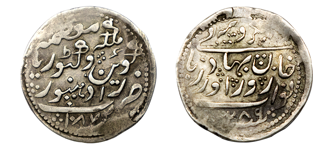 Jaipur State, Sawai Jaipur Mint, Silver Nazarana Rupee, AH 1166/6 RY, In the name of Ahmad Shah Bahadur, Obv: Persian legend "Sikka Mubarak Badshah Ghazi Ahmad Shah Bahadur", Rev: Persian legend "Sana 6 julus" & "zarb Sawai Jaipur" at the bottom, (KM #9), graded by NGC as AU58, Very Rare.