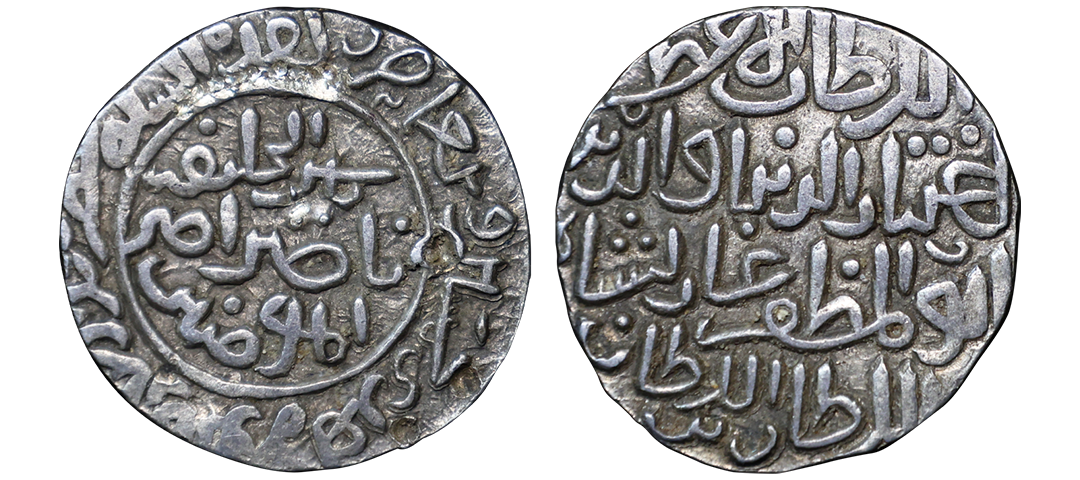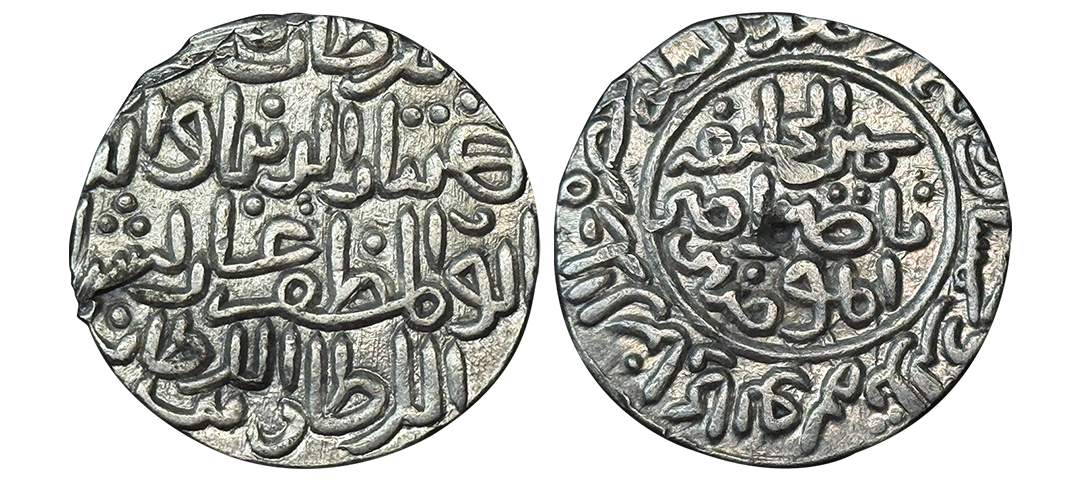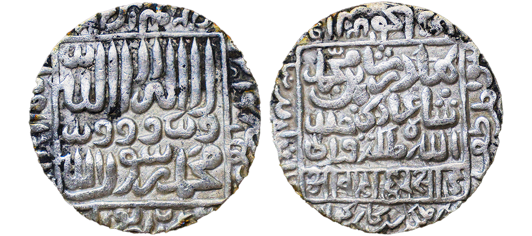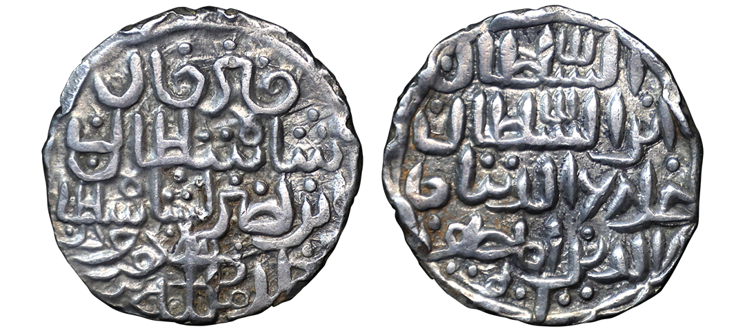 Bengal Sultanate, Nasir ud-din Mahmud (AH 837-864/1434-1459 AD), Chhatra (Umbrella) Type, Silver Tanka, 10.50 gms, Dar al Darb Mint, AH 858, Obv. Nasir ud dunya wa'al din Abu al Muzaffar Mahmud Shah al-sutan under Chhatra, Rev. gawth al islam wa-al muslimin khaldada mulkahu, G&G #B465, choice extremely fine for the type, extremely rare.