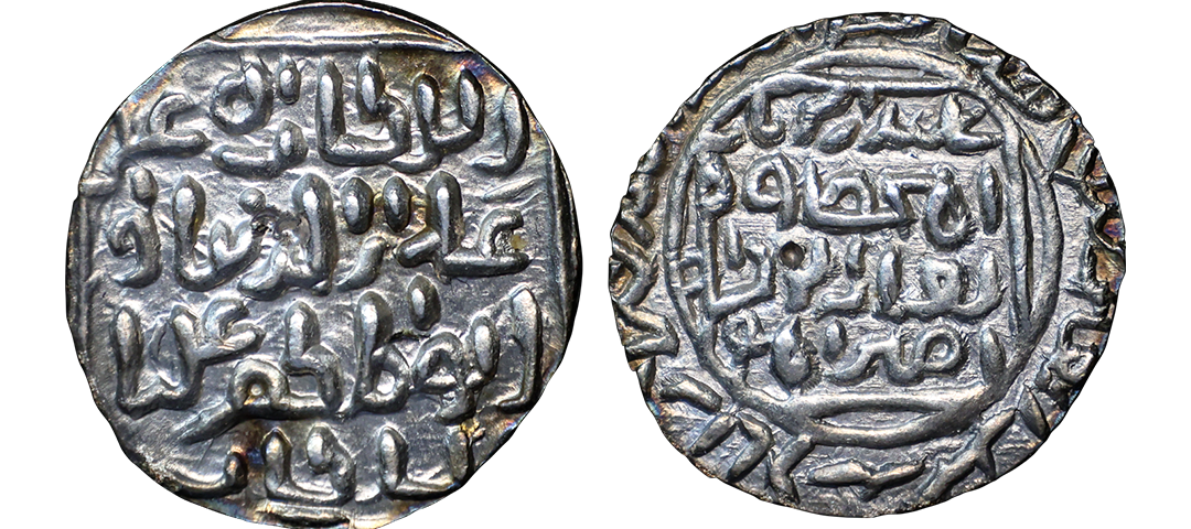 Sultans of Bengal, Silver tanka of Ikhtiyar al-Din Ghazi (in East Bengal) (1349-1352 AD), Hadrat Jalal Sunargaon mint, AH 751, G&G B138 (Listed as RR), 10.97g. Obv: Arabic legend al-sultan al-a'zam ikhtiyar al-dunya wa'l din abu'l muzaffar ghazi shah al-sultan bin al sultan. Rev: In circle, Arabic legend yamin al-khalifa nasir amir al-mu'minin with date and mint-name around. About extremely fine, Very rare.