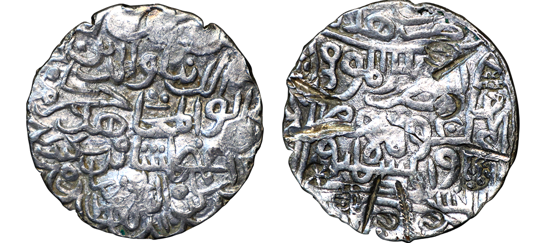 Sultans of Bengal, Silver tanka of Ikhtiyar al-Din Ghazi (in East Bengal) (1349-1352 AD), Hadrat Jalal Sunargaon mint, AH 751, G&G B138 (Listed as RR), 10.97g. Obv: Arabic legend al-sultan al-a'zam ikhtiyar al-dunya wa'l din abu'l muzaffar ghazi shah al-sultan bin al sultan. Rev: In circle, Arabic legend yamin al-khalifa nasir amir al-mu'minin with date and mint-name around. About extremely fine, Very rare.