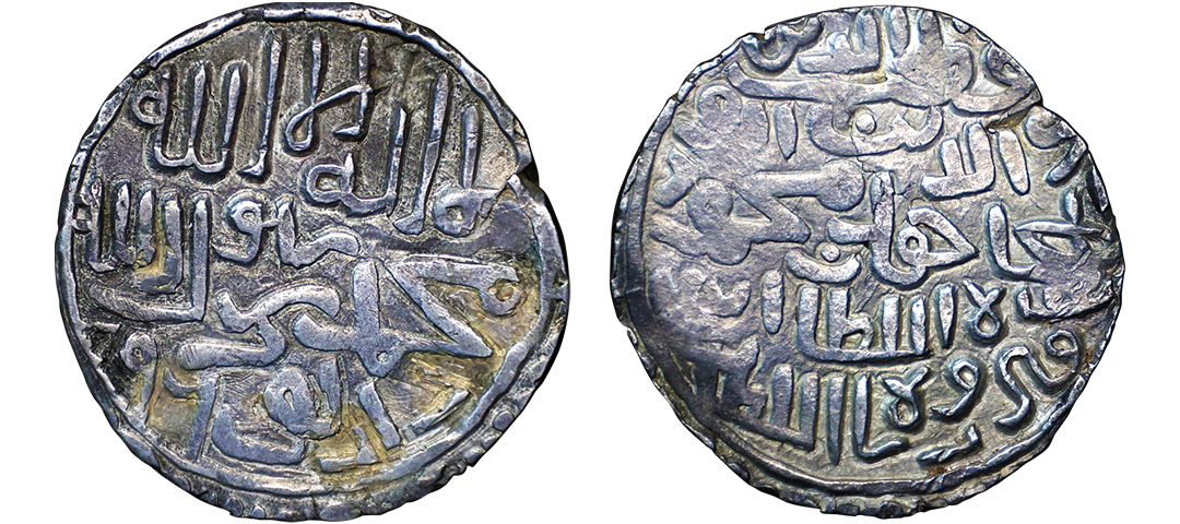Sultans of Bengal, Silver tanka of Ikhtiyar al-Din Ghazi (in East Bengal) (1349-1352 AD), Hadrat Jalal Sunargaon mint, AH 751, G&G B138 (Listed as RR), 10.97g. Obv: Arabic legend al-sultan al-a'zam ikhtiyar al-dunya wa'l din abu'l muzaffar ghazi shah al-sultan bin al sultan. Rev: In circle, Arabic legend yamin al-khalifa nasir amir al-mu'minin with date and mint-name around. About extremely fine, Very rare.