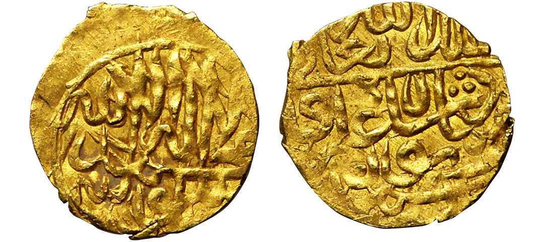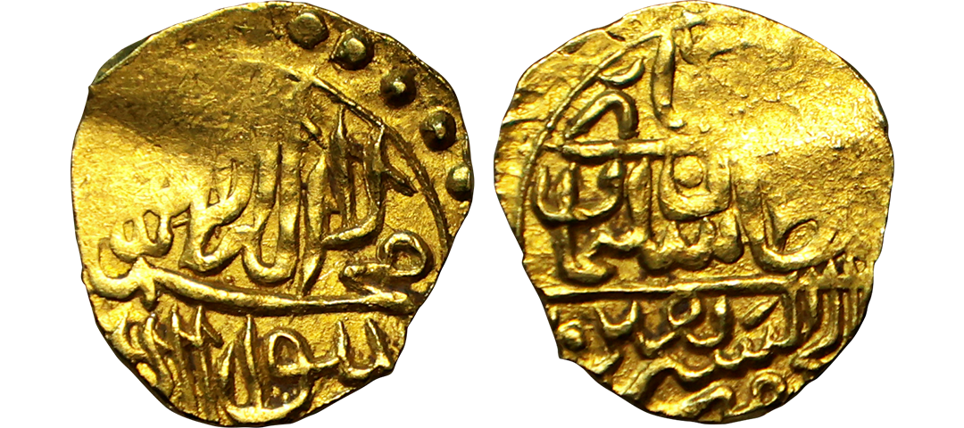 Akbar, Contemporary Gold Token, 10.93g, Imitation of Gold Mehrabi, Agra Mint, RY 49, Ilahi Month Amardad, Obv. Jal-e-jalal Akbar Allah, Rev. zarb Agra with RY Amardad Ilahi above, extremely fine, very rare. Despite of being a contemporary token this is is a very rare issue to find.